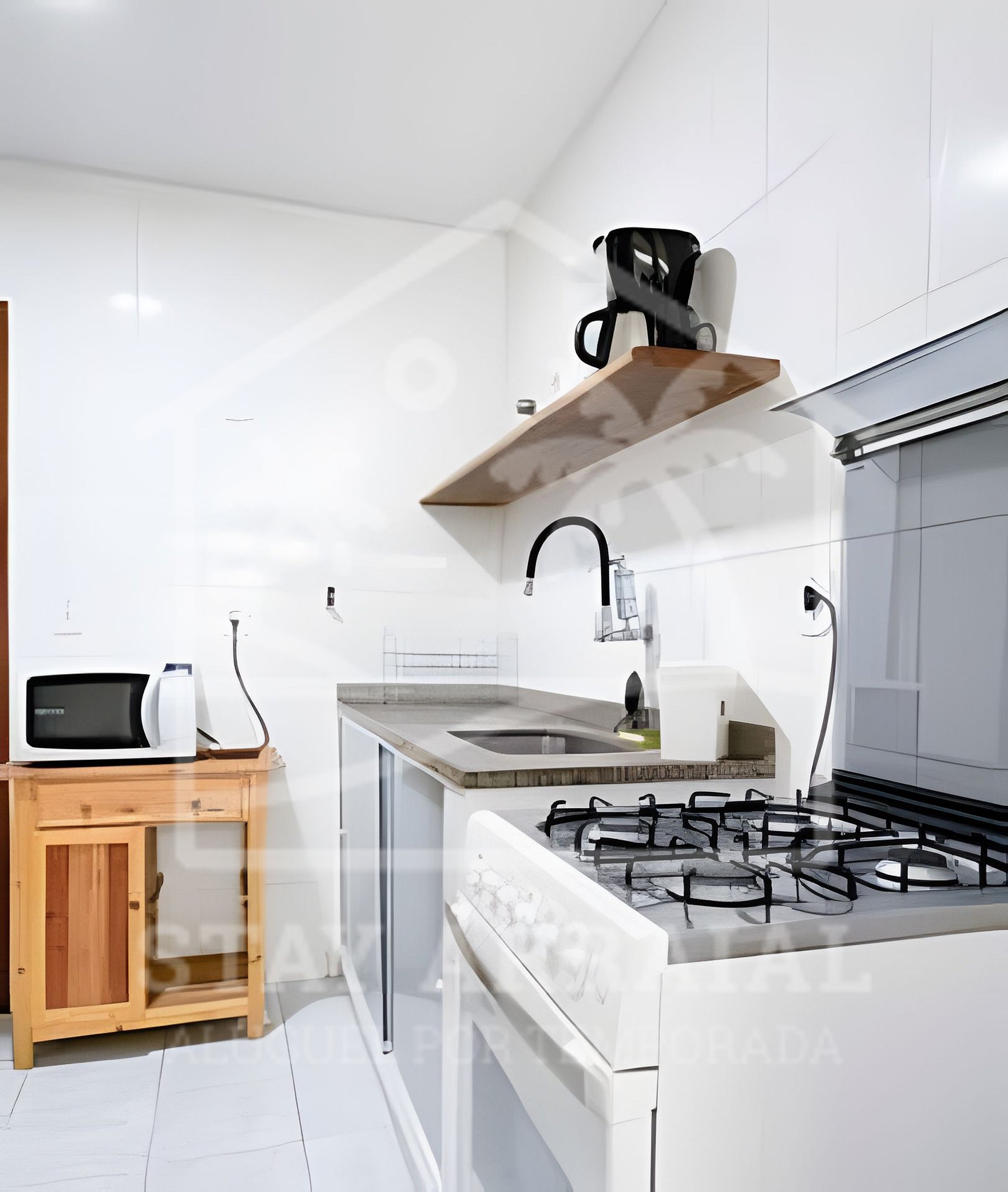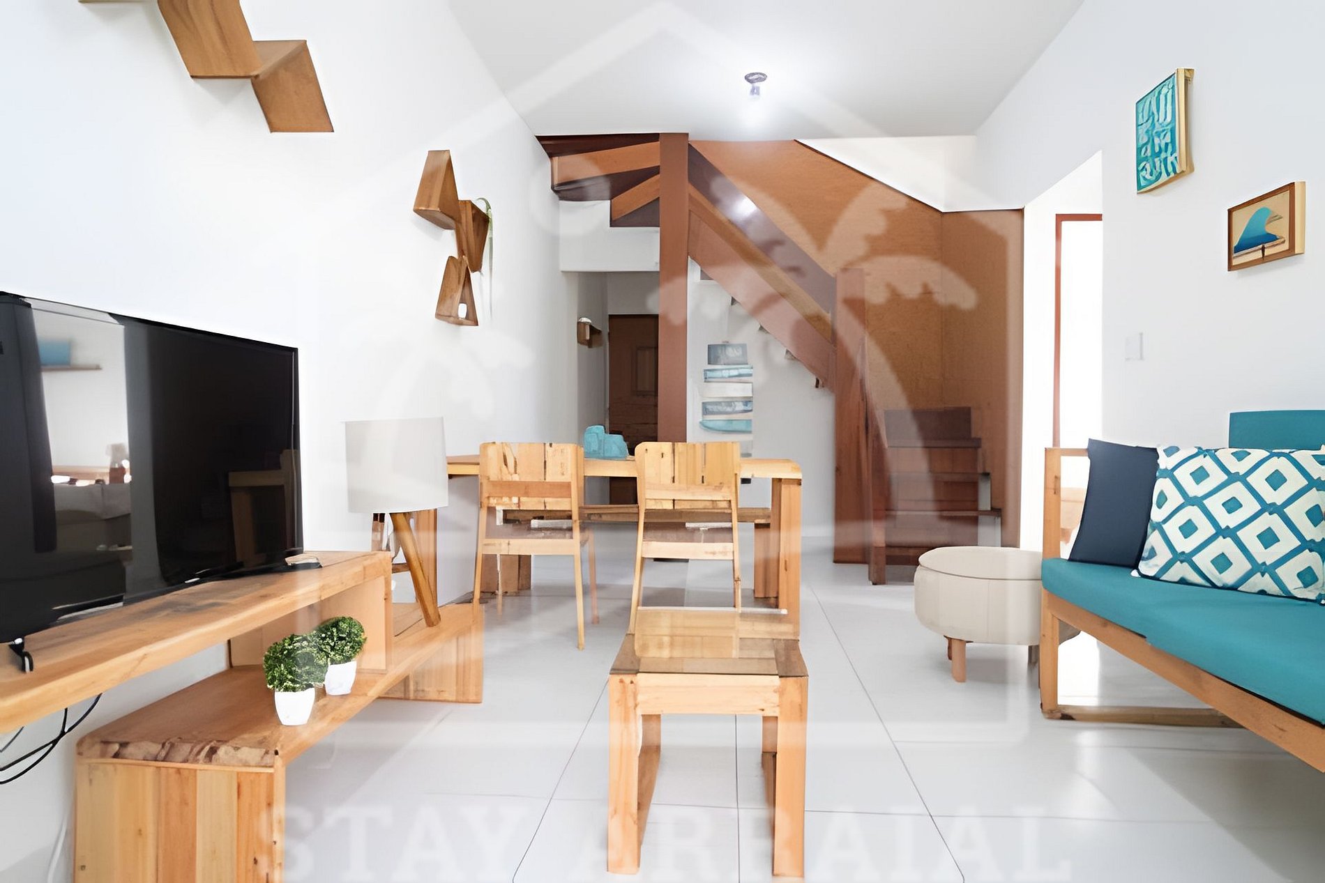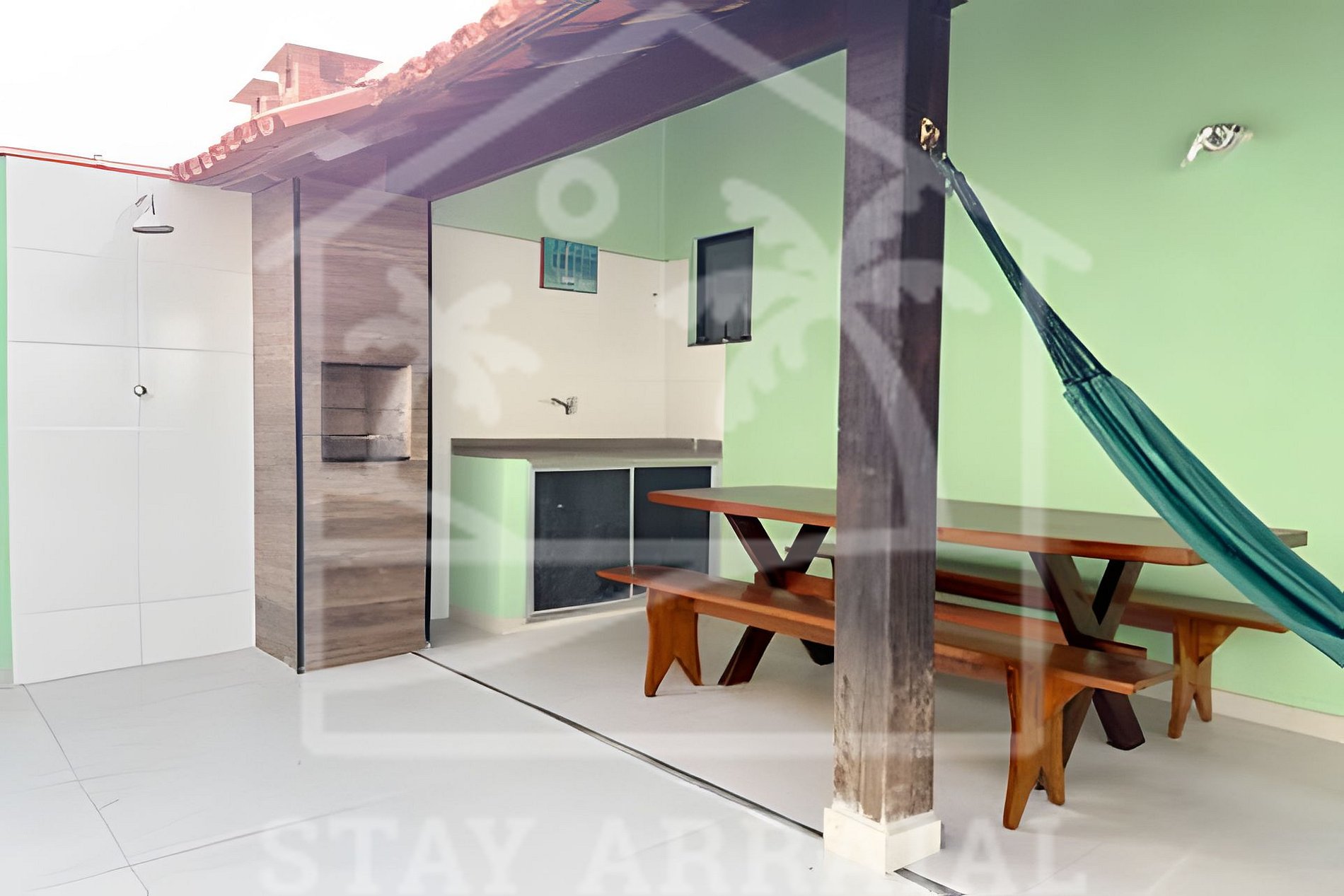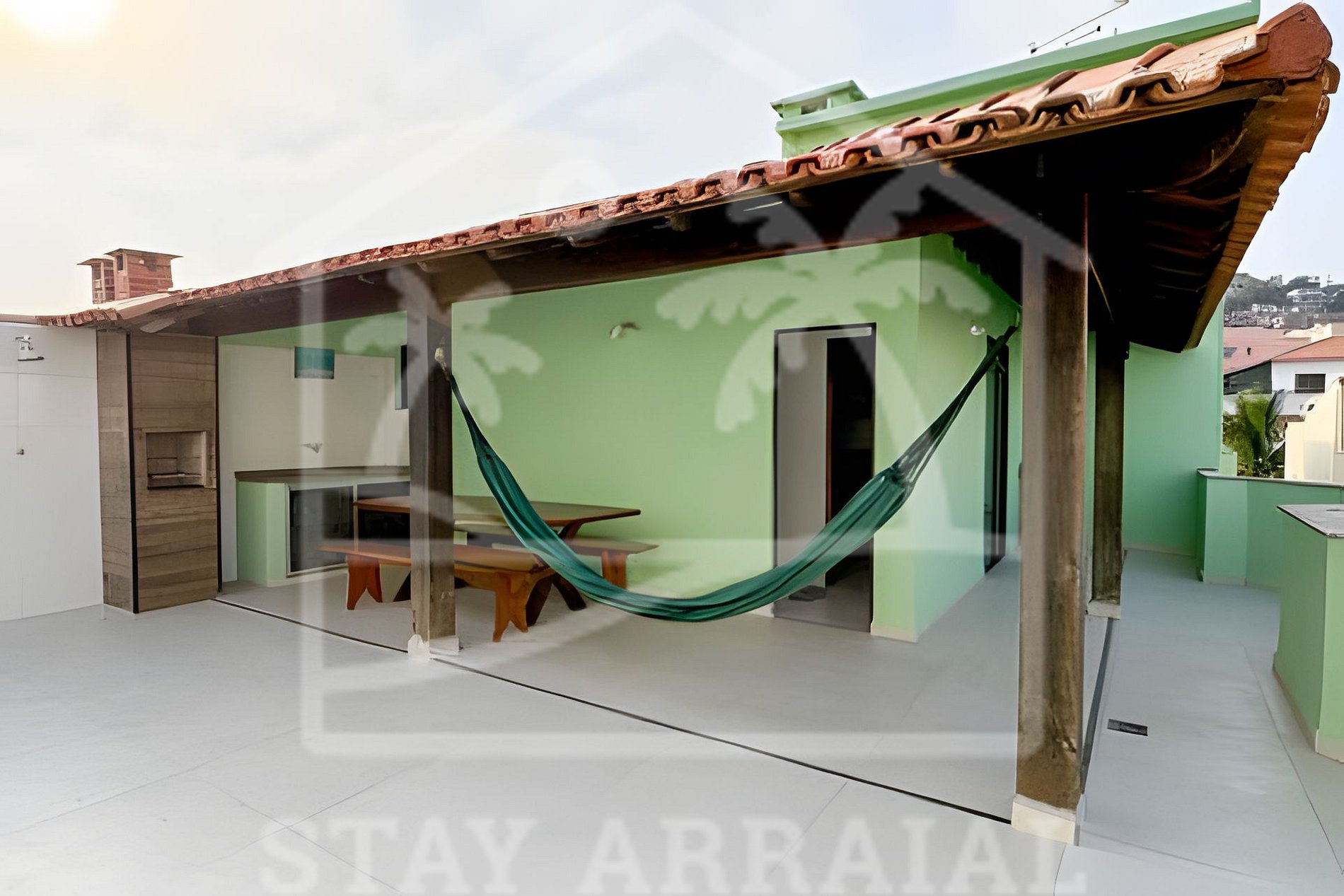 Você vai se hospedar em uma cobertura duplex espaçosa, localizada no segundo andar de um prédio residencial tranquilo, a poucos passos da Prainha. O acesso é feito por dois lances de escada, já que o prédio NÃO POSSUI ELEVADOR — ponto importante para quem tem mobilidade reduzida. O apartamento oferece cozinha completa, equipada com todos os utensílios necessários para preparar desde refeições rápidas até almoços em família ou jantares entre amigos. O grande destaque da propriedade é o terraço privativo, amplo, ensolarado e com churrasqueira e ducha externa — um espaço perfeito para relaxar após a praia ou aproveitar momentos ao ar livre com total privacidade.
