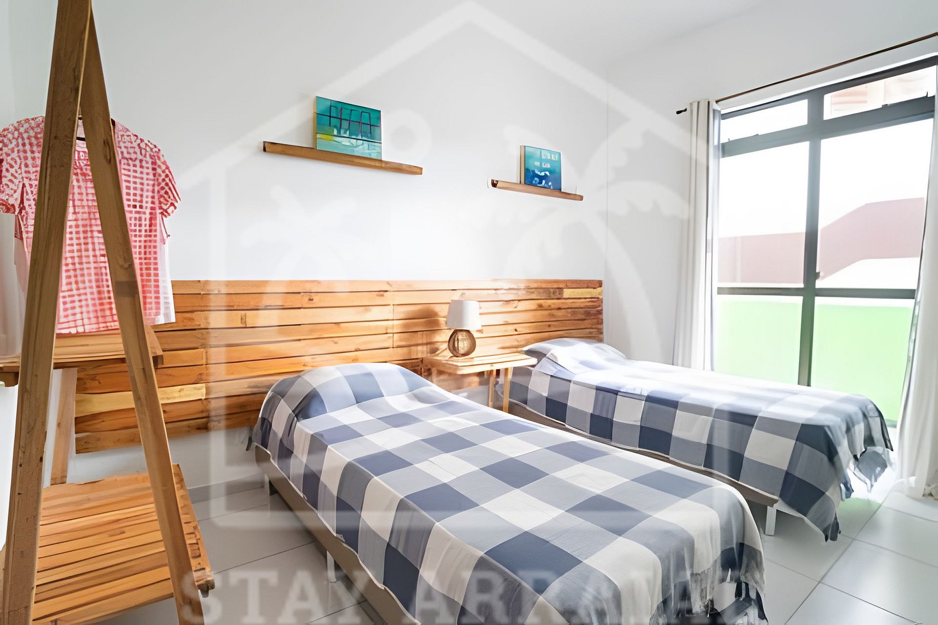 Cobertura duplex a 1 minuto da Prainha, com terraço privativo, churrasqueira e ducha externa. São 3 quartos, sendo 2 suítes (cama king e cama de casal) e um quarto com 2 camas de solteiro. Oferecemos colchões e travesseiros extras para acomodar todos com conforto. O espaço é amplo, iluminado e bem ventilado, ideal para famílias ou grupos. Conta com cozinha completa e 2 vagas de garagem. Tudo pensado pra você se sentir em casa desde o primeiro dia!