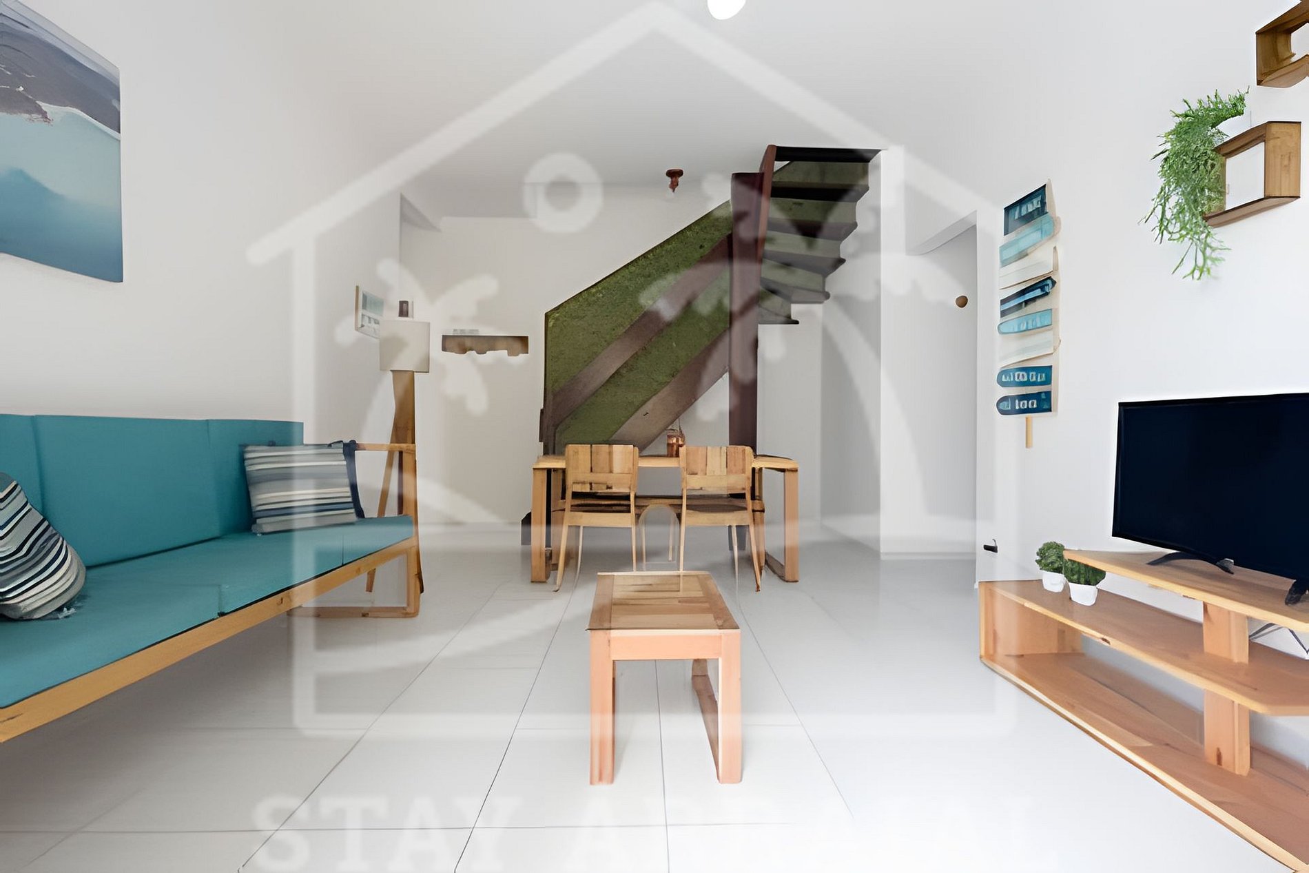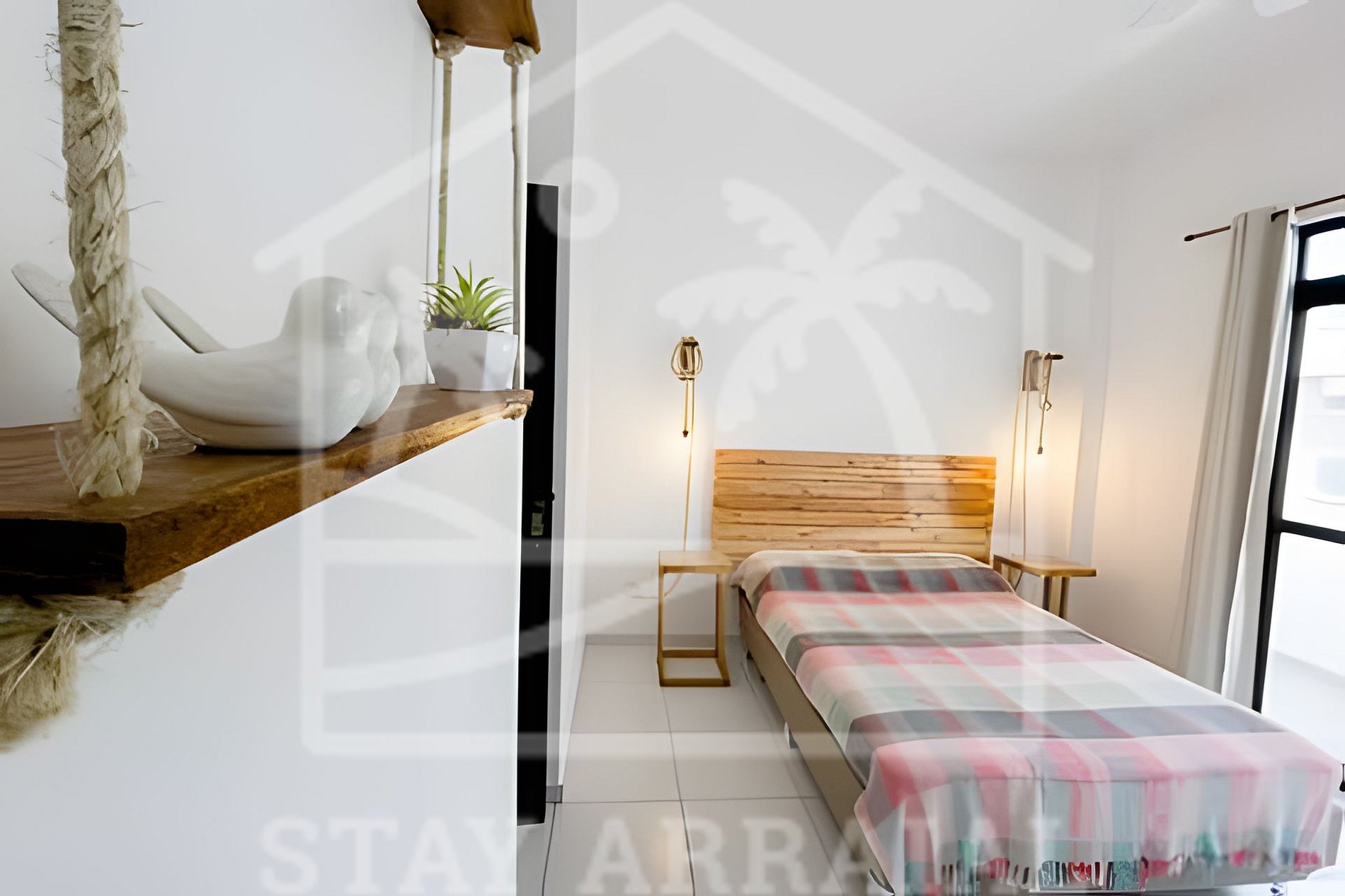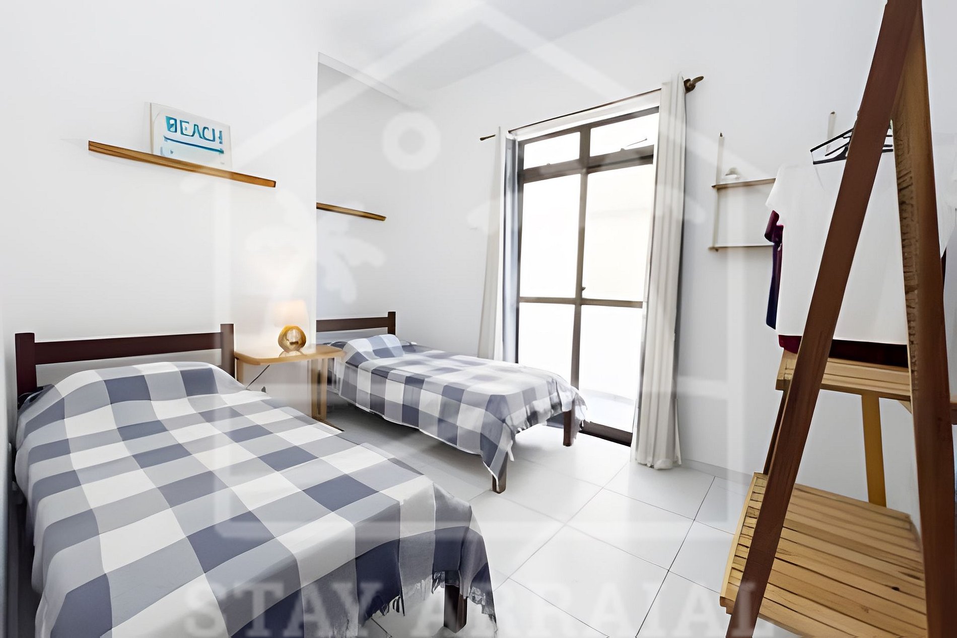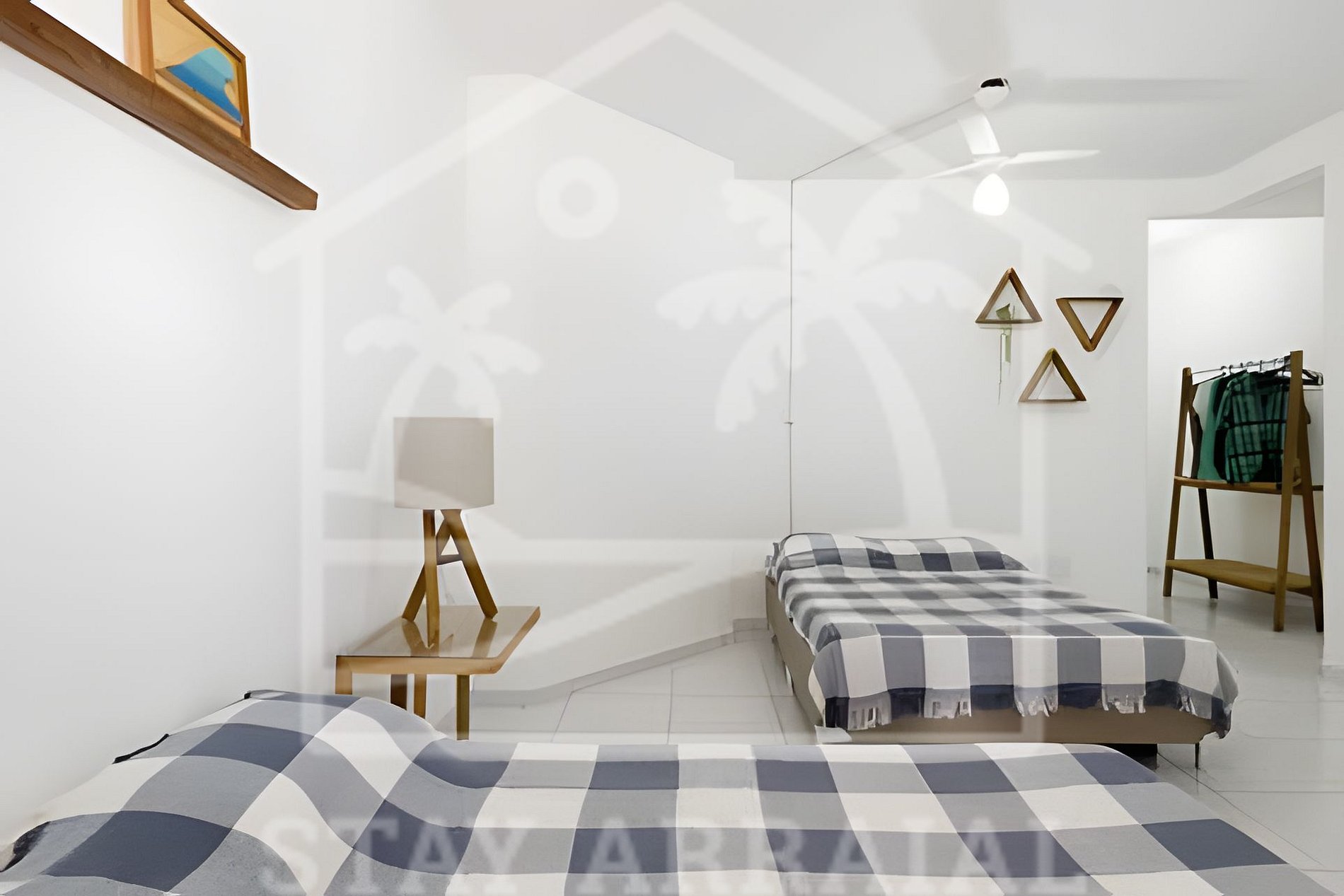 Você vai se hospedar em uma cobertura duplex espaçosa, localizada no segundo andar de um prédio residencial tranquilo, a poucos passos da Prainha. O acesso é feito por dois lances de escada, já que o prédio NÃO POSSUI ELEVADOR — ponto importante para quem tem mobilidade reduzida. O apartamento oferece cozinha completa, equipada com todos os utensílios necessários para preparar desde refeições rápidas até almoços em família ou jantares entre amigos. O grande destaque da propriedade é o terraço privativo, amplo, ensolarado e com churrasqueira e ducha externa — um espaço perfeito para relaxar após a praia ou aproveitar momentos ao ar livre com total privacidade.
