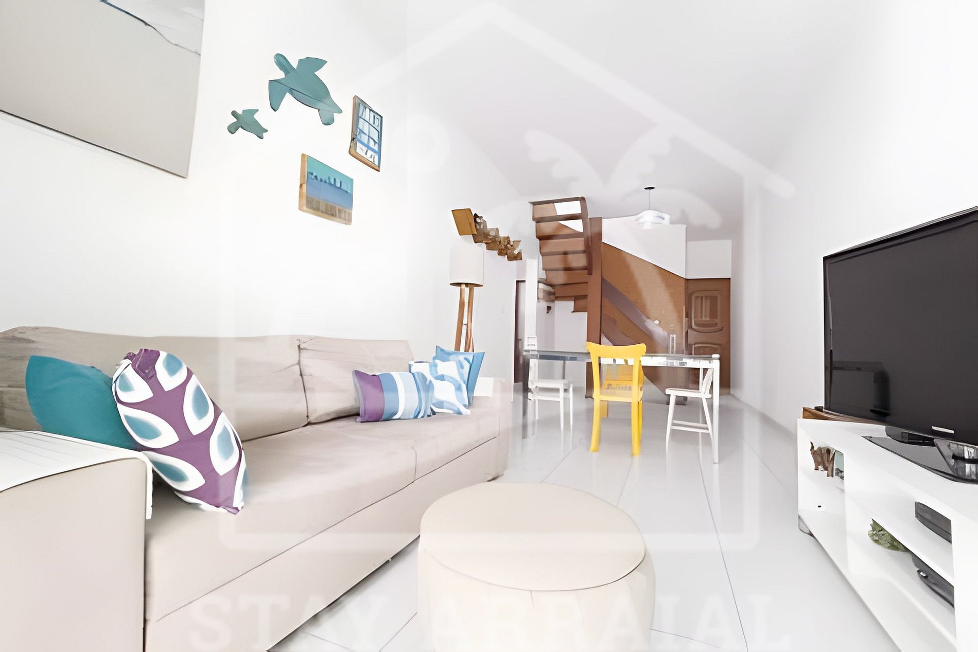 Você vai se hospedar em uma cobertura duplex espaçosa, localizada no segundo andar de um prédio residencial tranquilo, a poucos passos da Prainha. O acesso é feito por dois lances de escada, já que o prédio NÃO POSSUI ELEVADOR — ponto importante para quem tem mobilidade reduzida. O apartamento oferece uma cozinha completa, equipada com todos os utensílios necessários para preparar desde refeições rápidas até almoços ou jantares especiais com a família ou amigos. O grande destaque da propriedade é o terraço privativo, amplo, ensolarado e equipado com churrasqueira e ducha externa — um espaço perfeito pAra relaxar após a praia e curtir momentos ao ar livre com privacidade total. Os ambientes são bem ventilados, iluminados e decorados com um estilo leve e aconchegante, ideal para quem busca praticidade e conforto em uma das melhores localizações da cidade. A localização é super prática: há uma padaria e mercearia a 300 metros, além de um supermercado a 500 metros, facilitando a rotina durante a estadia. Importante: NÃO FORNECEMOS ROUPA DE CAMA E BANHO. Recomendamos que os hóspedes tragam seus próprios itens pessoais. Oferecemos travesseiros e colchões extras para acomodar todos com conforto.